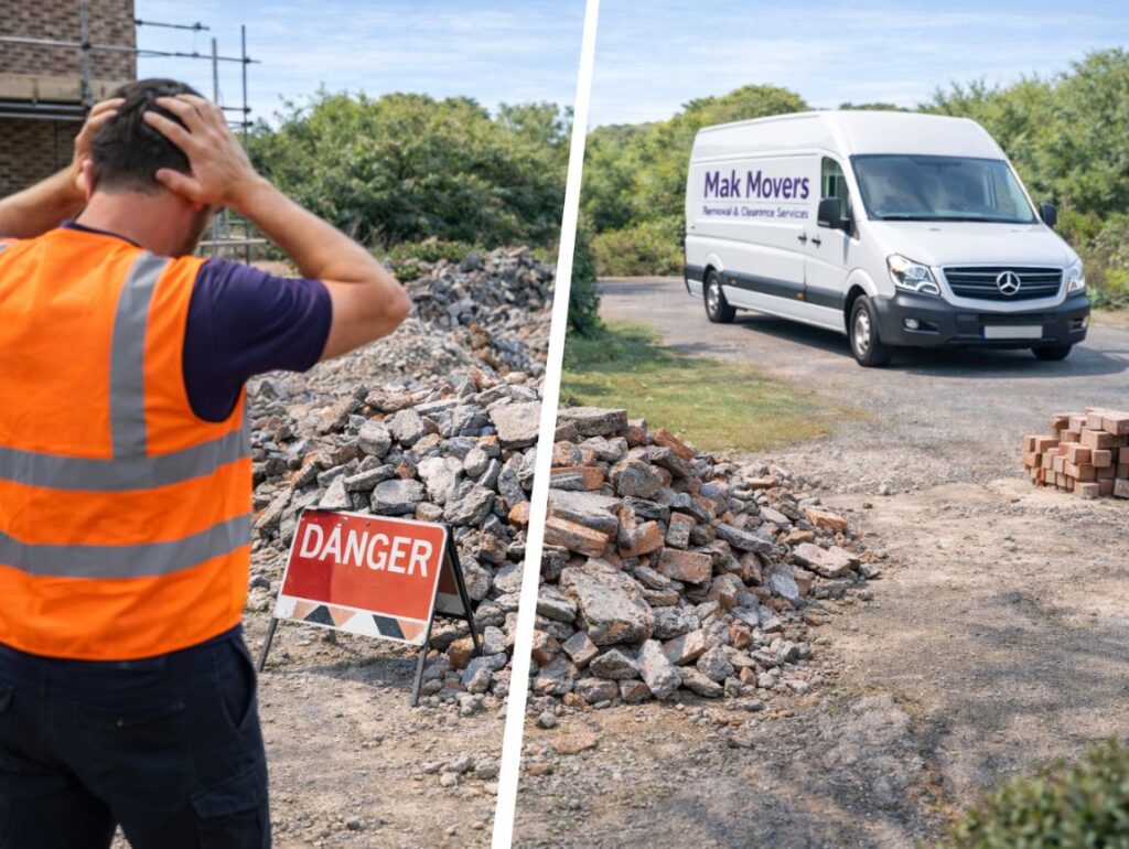 Mak Movers provides quick, affordable and professional rubble removal services for domestic and commercial properties. Whether you have bricks, concrete, tiles or construction debris to clear, our experienced team collects and disposes of everything safely, leaving your site clean and ready to use.
